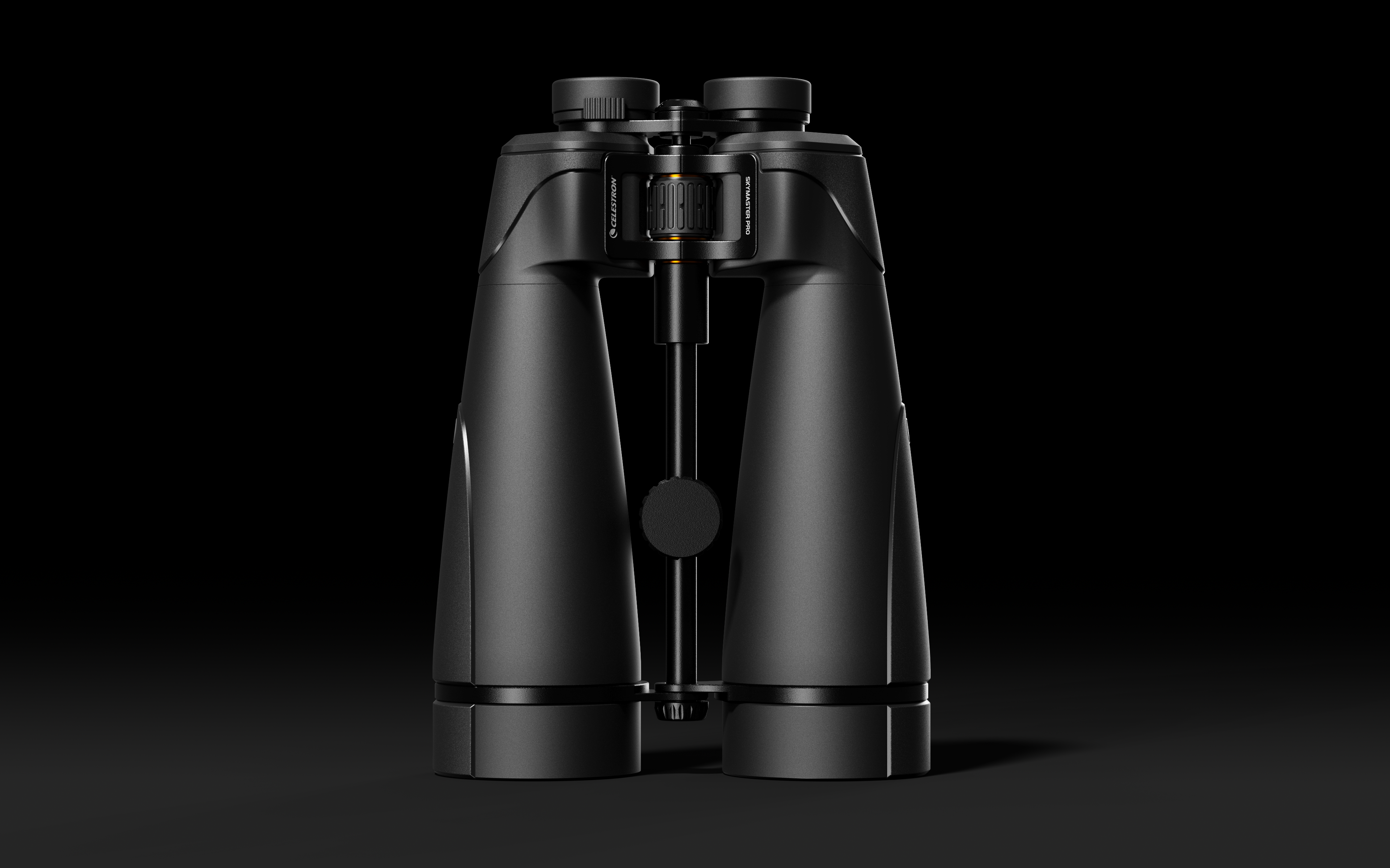 The final design is a seamless combination of surfaces, textures, grips, and tactile points that converge to craft a comprehensive package exuding comfort, build quality, and durability. Every surface is thoughtfully considered to ensure an optimal user experience, intuitively guiding hand and finger placement. An assertively textured focus wheel, detailed with anodized rings on both sides, facilitates clear visibility and swift adjustments even in the encompassing darkness of the night sky. Accenting each side is a badge, elegantly centered within the sweeping curvature depicting a celestial entity in motion through space. The rubber over-molding was designed as armor to protect the glass and internal mechanics.