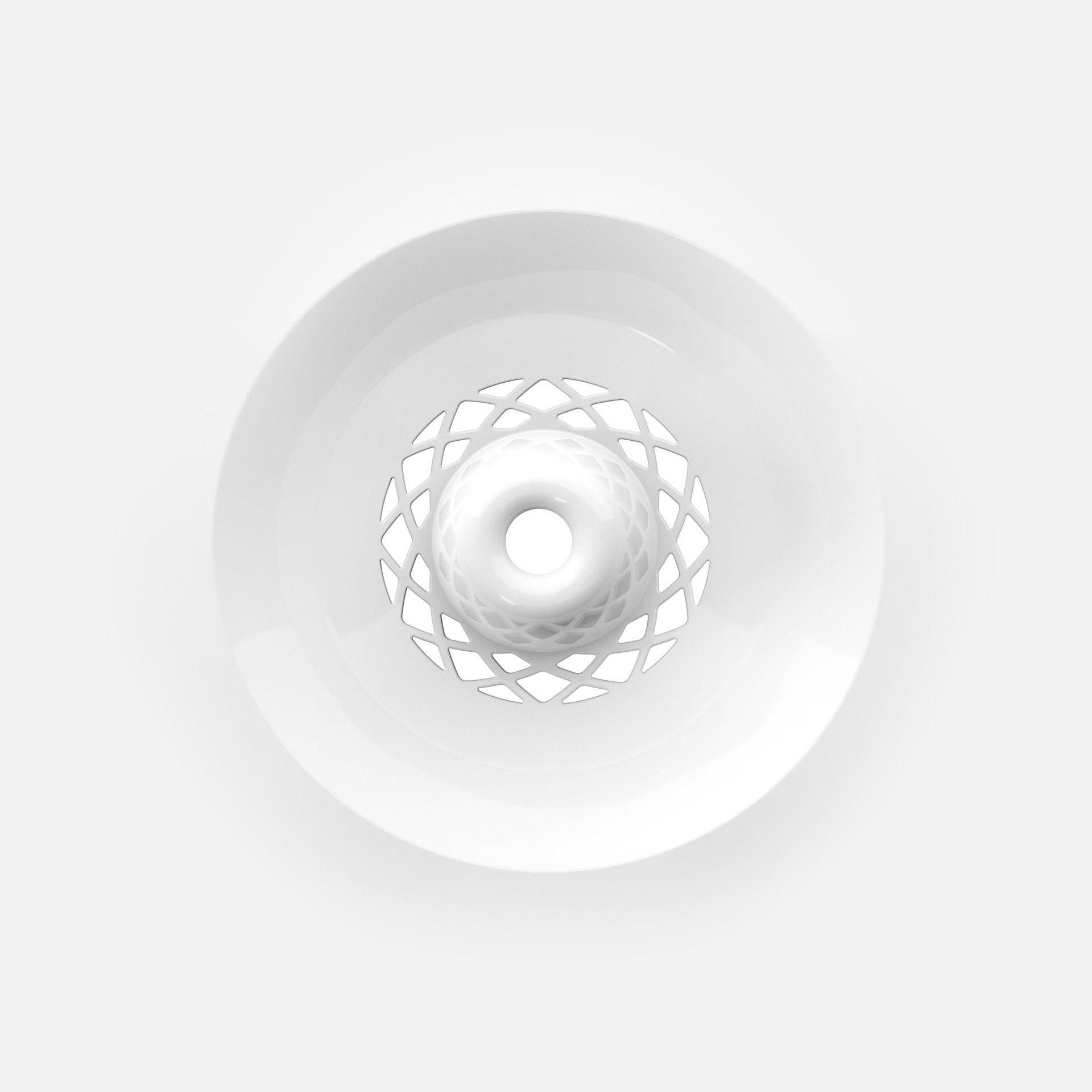 The shower head that distributes the hot water over the coffee grounds was designed in an optimum pattern that maximizes the flavor of the coffee.