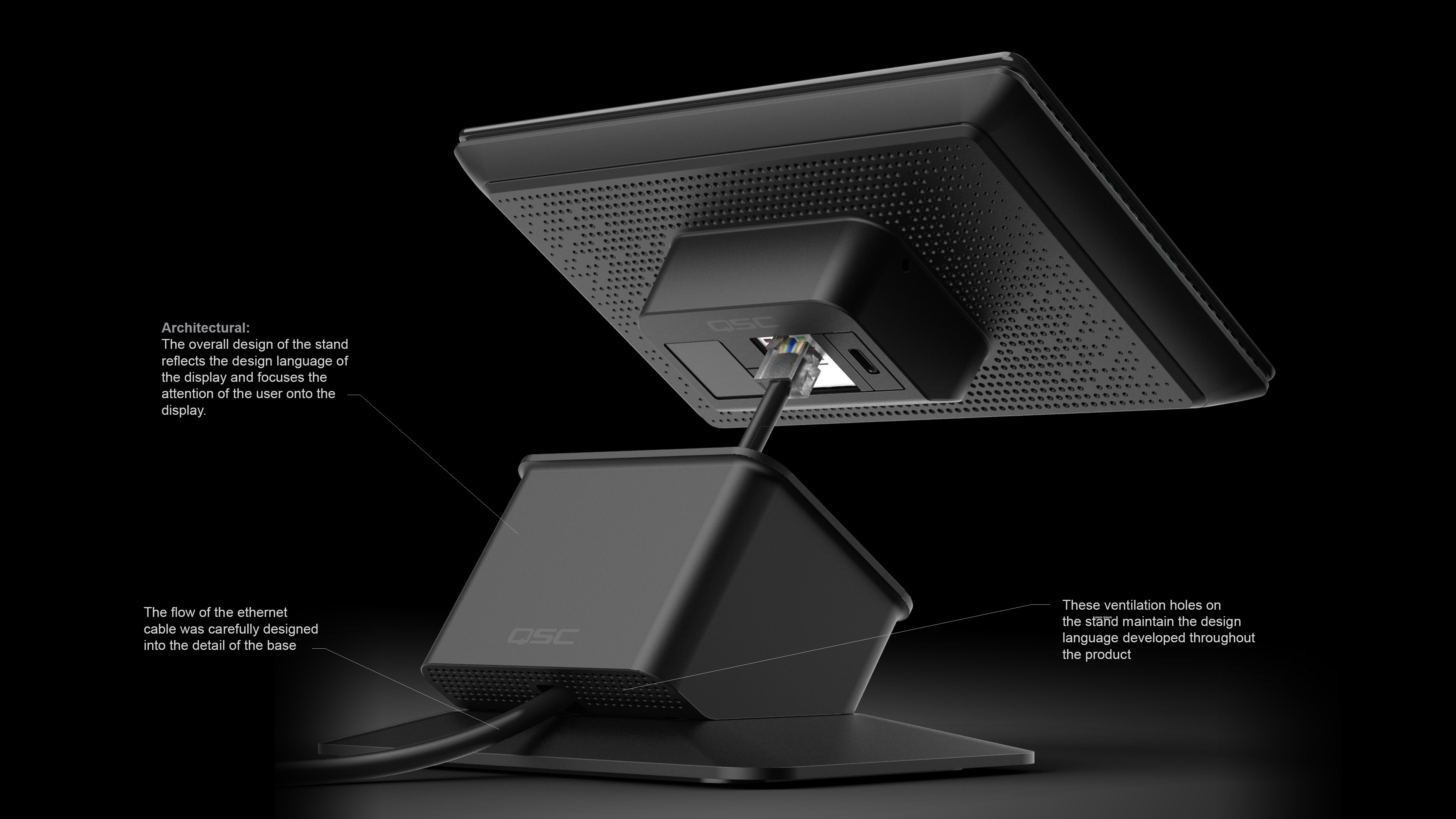 The table top stand was designed to be visually unobtrusive but also to enhance the forms of the display, and still maintain the design language and attention to detail that the overall product contains.