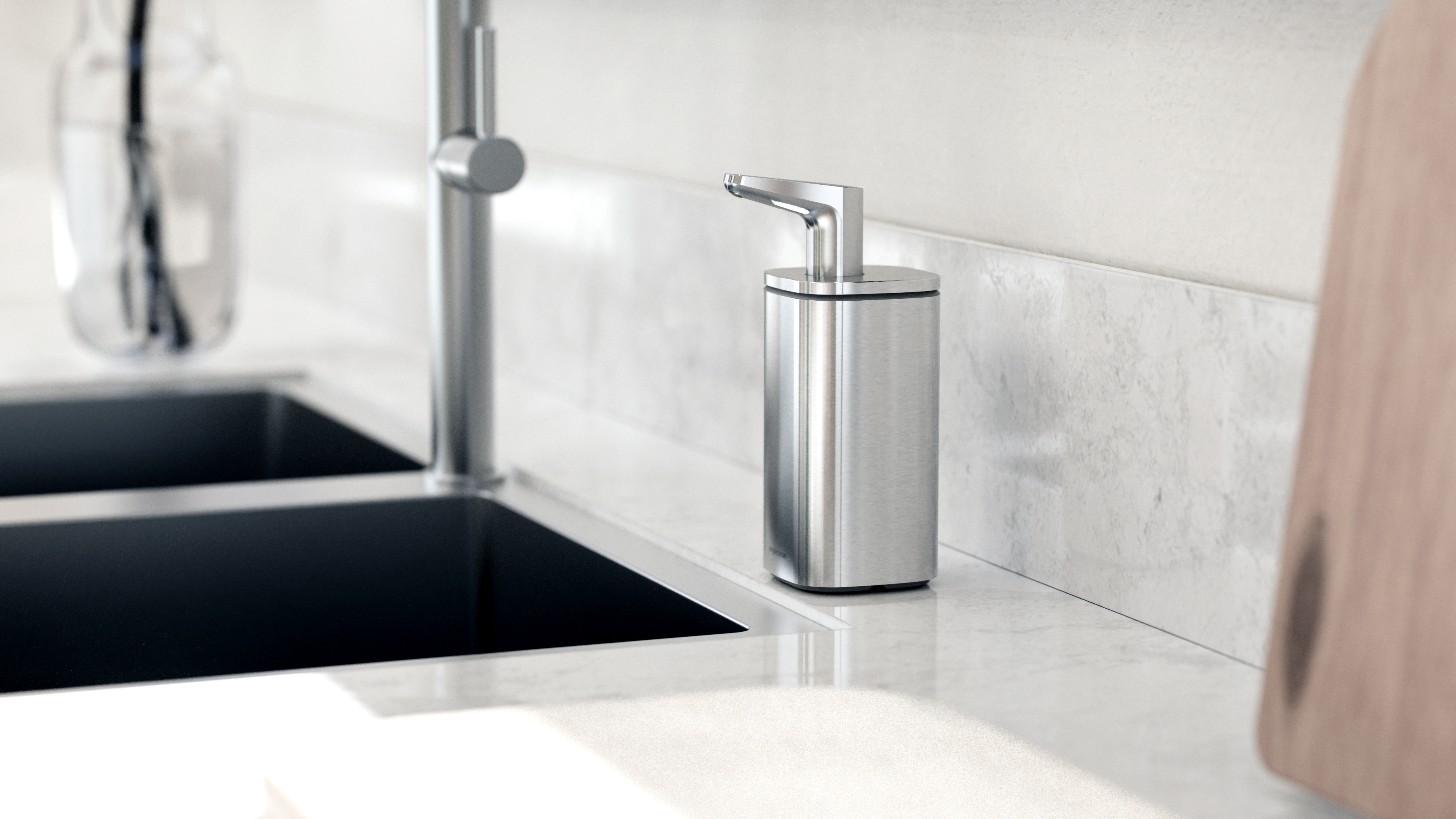 There are many manual soap pumps currently on the market, but few really stand out. Our goal was to design a soap pump that made the experience of using a soap pump outstanding and fresh while still reflecting the brand language and philosophy of the simplehuman brand.