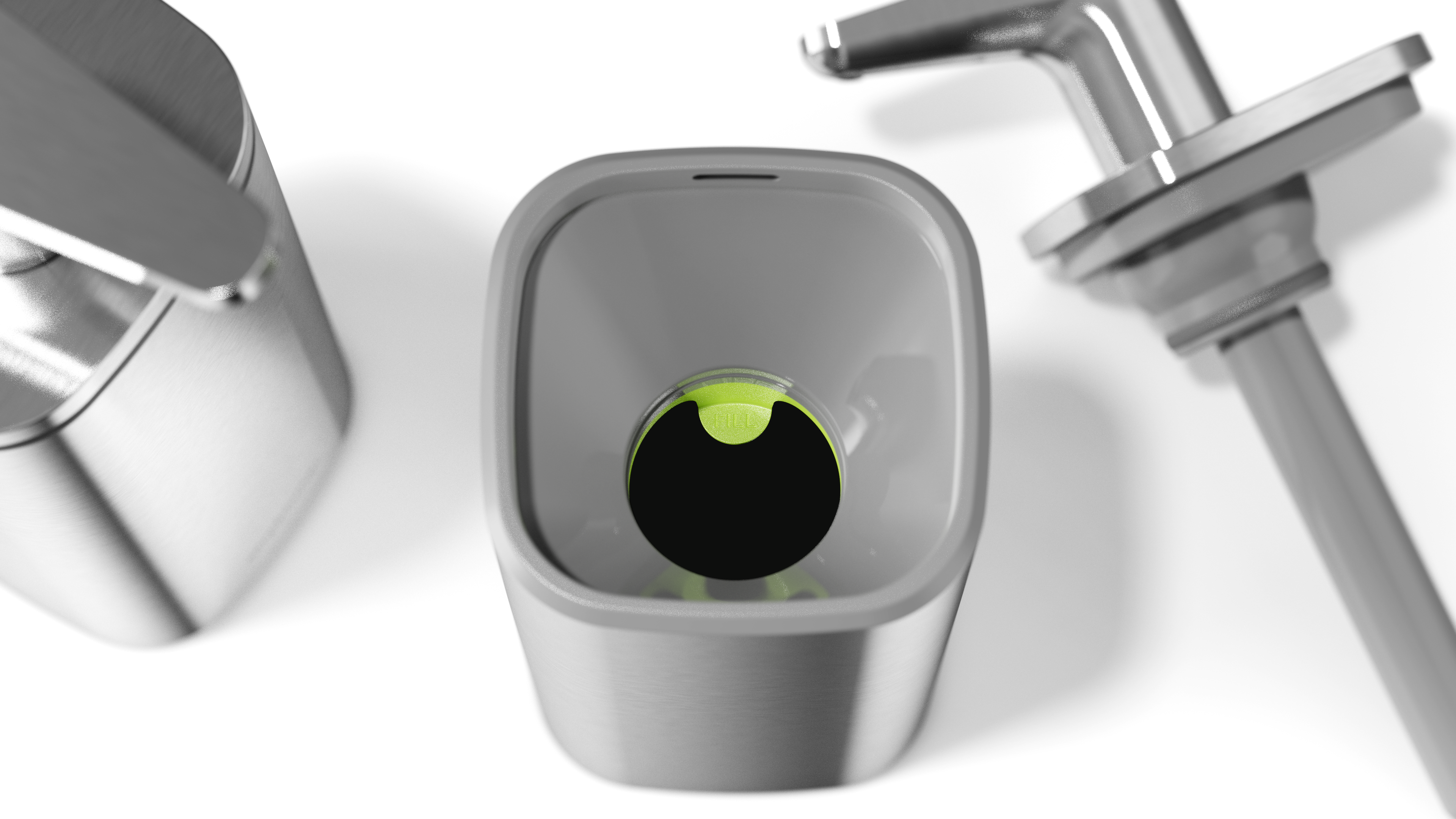 Much effort in the design was placed on the product UX - The feel of pressing the pump; the ease of removing the lid; making sure you could use one hand to operate the pump; a color accent to make the fill line easily visible; A silver-ion coating on the exterior of the pump to resist fingerprints and help prevent the spread of germs.