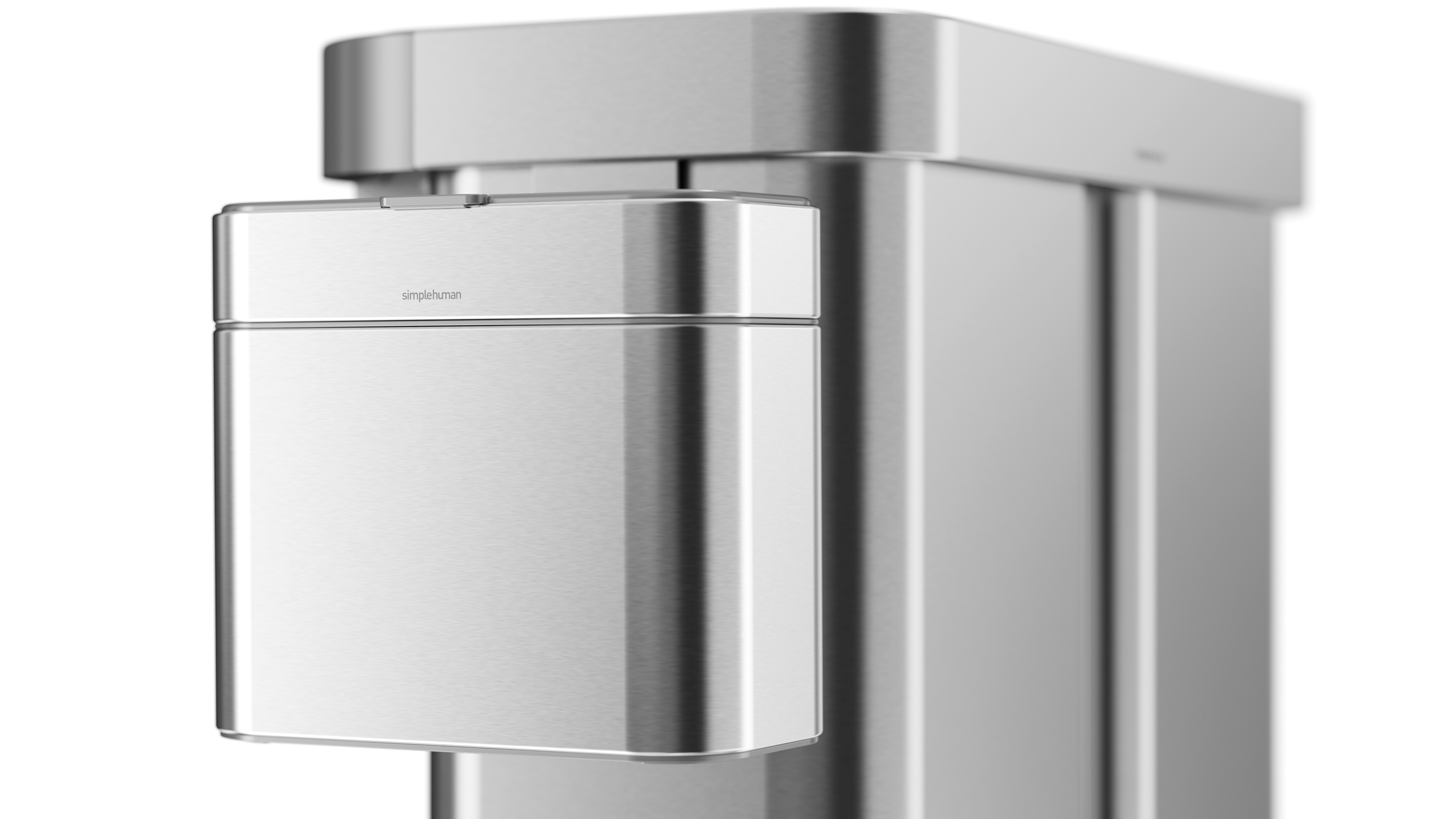 The compost caddy was designed with a magnetic dock that allows it to attach to the side of a simplehuman trash can for convenience. A magnet in the lid keeps the lid open during use.